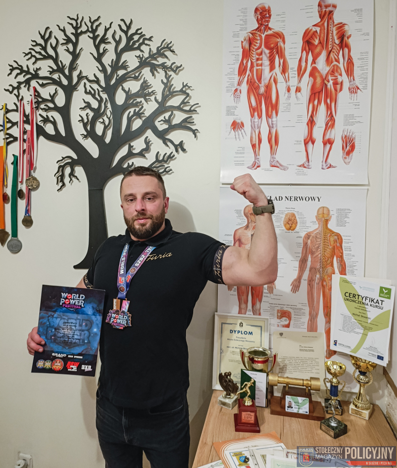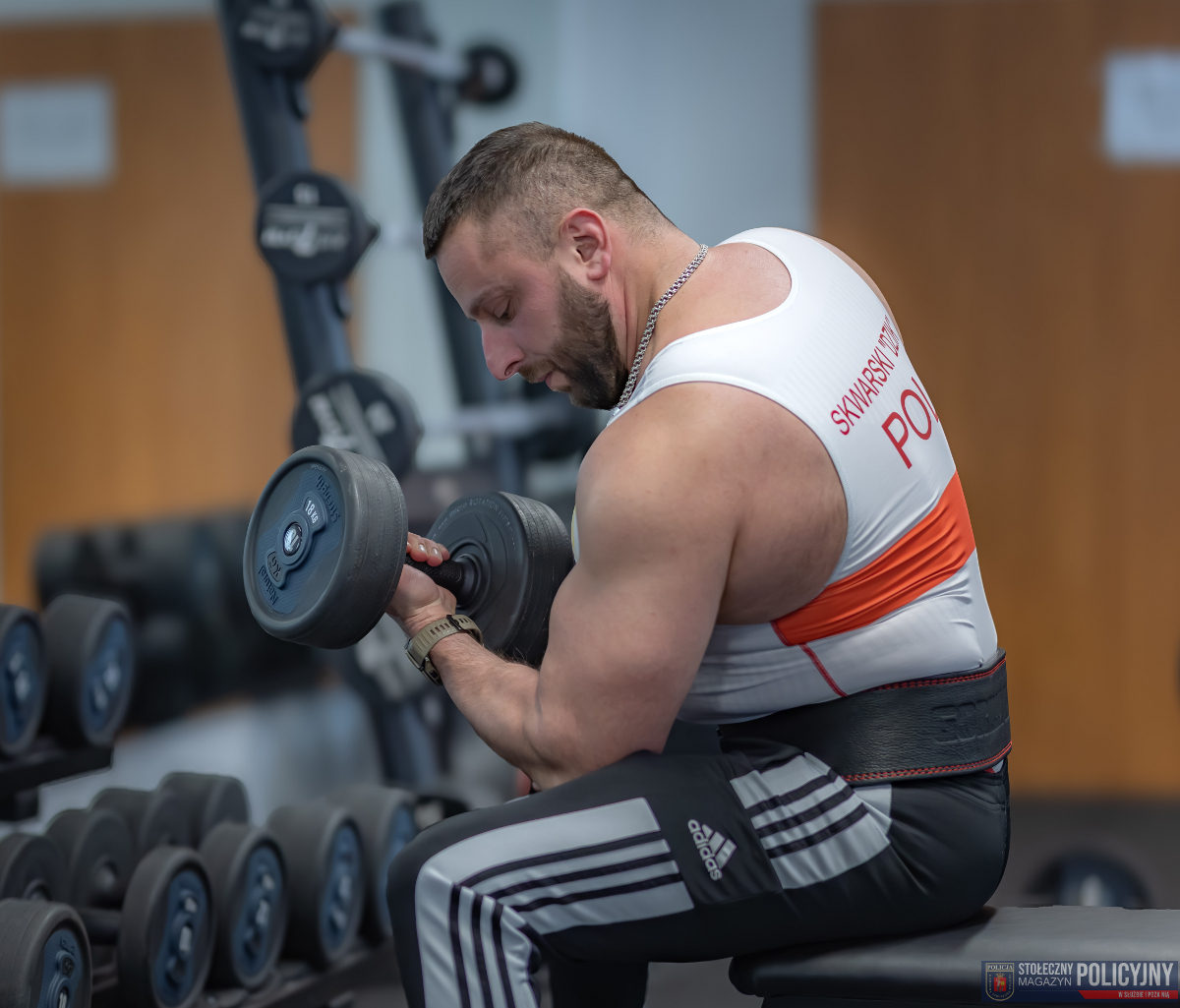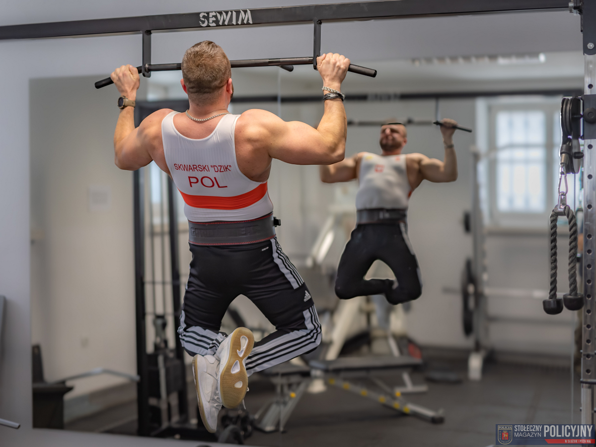 O sile naszej formacji decyduje każde ogniwo będące elementem tego łańcucha, policjant, policjantka, pracownik i pracownica Policji. To wyjątkowi ludzie, których praca i służba jest ważna i odpowiedzialna, a której celem jest bezpieczeństwo publiczne. Dobrze wykonane zadanie potrafić dać poczucie satysfakcji, ale trzeba mieć w sobie wiele siły, nie tylko wewnętrznej, aby podźwignąć ciężar odpowiedzialności za bezpieczeństwo innych, życie, zdrowie i mienie. Mocna psychika i fizyczna sprawność to szczególny tandem cech, które każdy funkcjonariusz powinien posiadać. Takim przykładem jest młodszy aspirant Michał Skwarski, policjant Wydziału Ruchu Drogowego Komendy Stołecznej Policji, który w codziennej służbie dźwiga wspomnianą odpowiedzialność, a w czasie wolnym prawdziwe ciężary. Zarówno zawód policjanta, jak i sportowa pasja są bardzo wymagające. Jednak uporem i systematycznością można osiągać sukcesy w każdej z tych dziedzin.