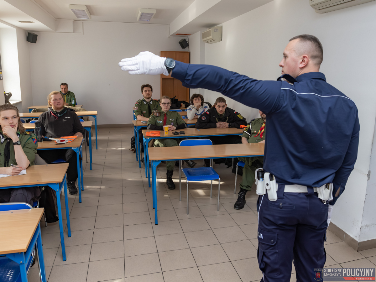 Policjanci z Sekcji Profilaktyki Społecznej WRD KSP zorganizowali szkolenie mające przygotować pełnoletnich harcerzy do realizowania zadań związanych z kierowaniem przez nich ruchem drogowym. Nabyte umiejętności będą mogli wykorzystać teraz podczas wydarzeń oraz imprez, w których zabezpieczeniu od wielu lat biorą udział tj. pielgrzymek, rajdów, przemarszy. Harcerze w tej dziedzinie mogą pochwalić się historią sięgającą swoich początków czasów Policji Państwowej, kontynuowanej następnie w okresie powojennym, aż do czasów dzisiejszych.
