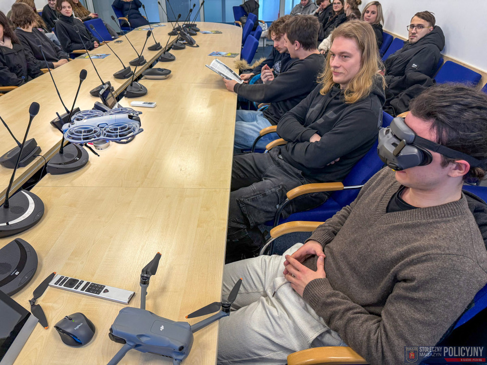 Nie tylko drony były tematem spotkania ze studentami II roku Bezpieczeństwa Wewnętrznego Uczelni Techniczno-Handlowej im. Heleny Chodkowskiej w Warszawie, którzy w ramach przedmiotu Bezpieczeństwo inteligentnych miast odwiedzili Komendę Stołeczną Policji. Funkcjonariusze prowadzący wykład zaprosili studentów do odwiedzenia Stołecznego Stanowiska Kierowania, przybliżając im funkcjonowanie sztabu, prowadzenie i zarządzanie operacjami policyjnymi oraz obsługę zdarzeń za pośrednictwem dostępnych w stolicy sił policyjnych, a także nadzór i koordynację nad działaniami policjantów na terenie całego garnizonu stołecznego. Studenci mieli również okazję spotkać się z policjantką z Wydziału Doboru, która przedstawiła dokładnie, jak wygląda proces rekrutacji do służby.
